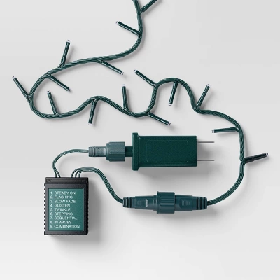 Add a cool touch of radiance to your decor with these LED Concave Christmas String Lights from Wondershop™. Featuring a dark green plastic cord strung with 100 small, concave LED bulbs, these blue decorative string lights add a magical touch to both indoor and outdoor spaces. Powered by electricity, these lights connect end to end — up to three sets — and feature nine settings for a personalized holiday glow. Transform your living or dining room, brighten your outdoor decor, or highlight your festive decorations by draping these lights along walls, trees, shelves or door arches.